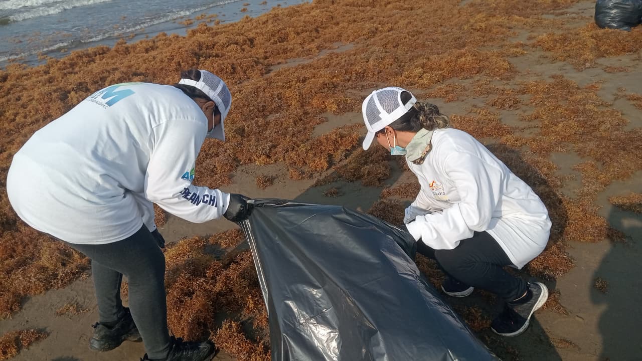 Se encontraron restos de tortugas en su mayoría, los cuales van recalando poco a poco y en algunos puntos se encuentran plastas de chapopote de diferentes tamaños combinadas con algas, que manchan la arena y el mar.