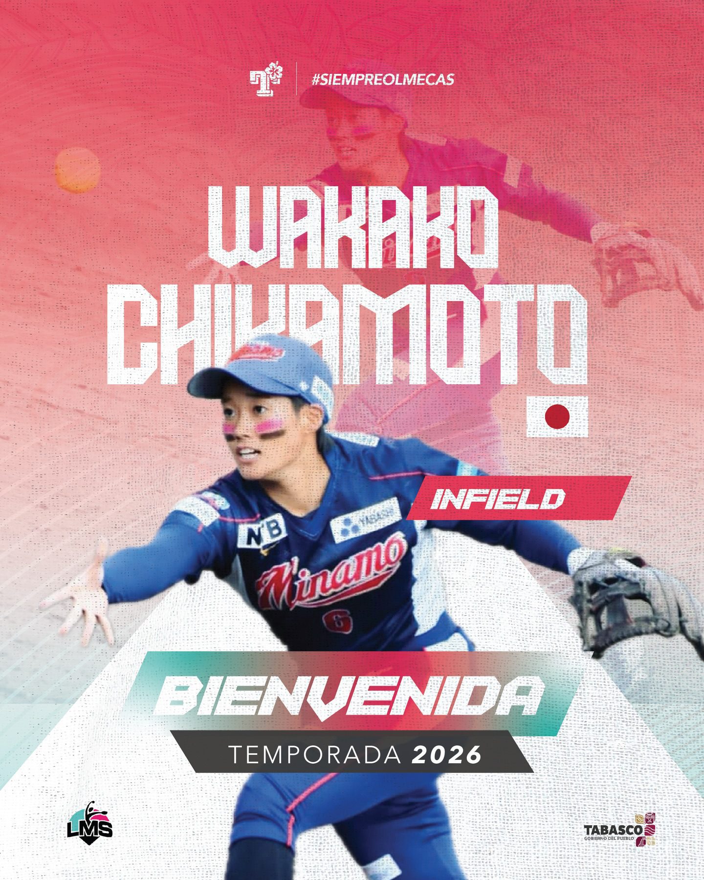 Por su parte, Wakako Chikamoto aporta experiencia internacional tras competir en la Liga Japonesa de Softbol con Ogaki Minamo y posteriormente en la Serie A1 del softbol italiano con ARES Safety Macerata. Debutó con el equipo europeo en mayo de 2025, destacando desde su primer juego al conectar el primer home run de la campaña.