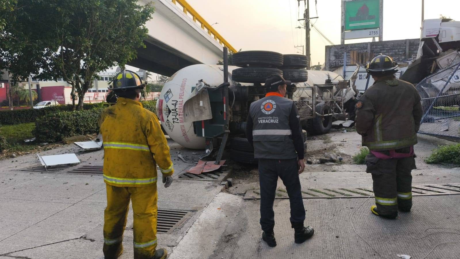 Cae pipa con amoniaco en distribuidor vial de Coatzacoalcos; un herido
