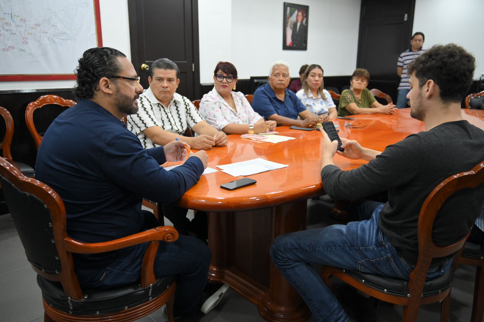 Coatzacoalcos, Ver.- El presidente de Coatzacoalcos, Pedro Miguel Rosaldo García, sostuvo una reunión en la Sala de Presidencia con vecinos de la colonia Puerto México. Durante el encuentro, se estableció una agenda de trabajo que incluye una visita al sector por el próximo fin de semana.