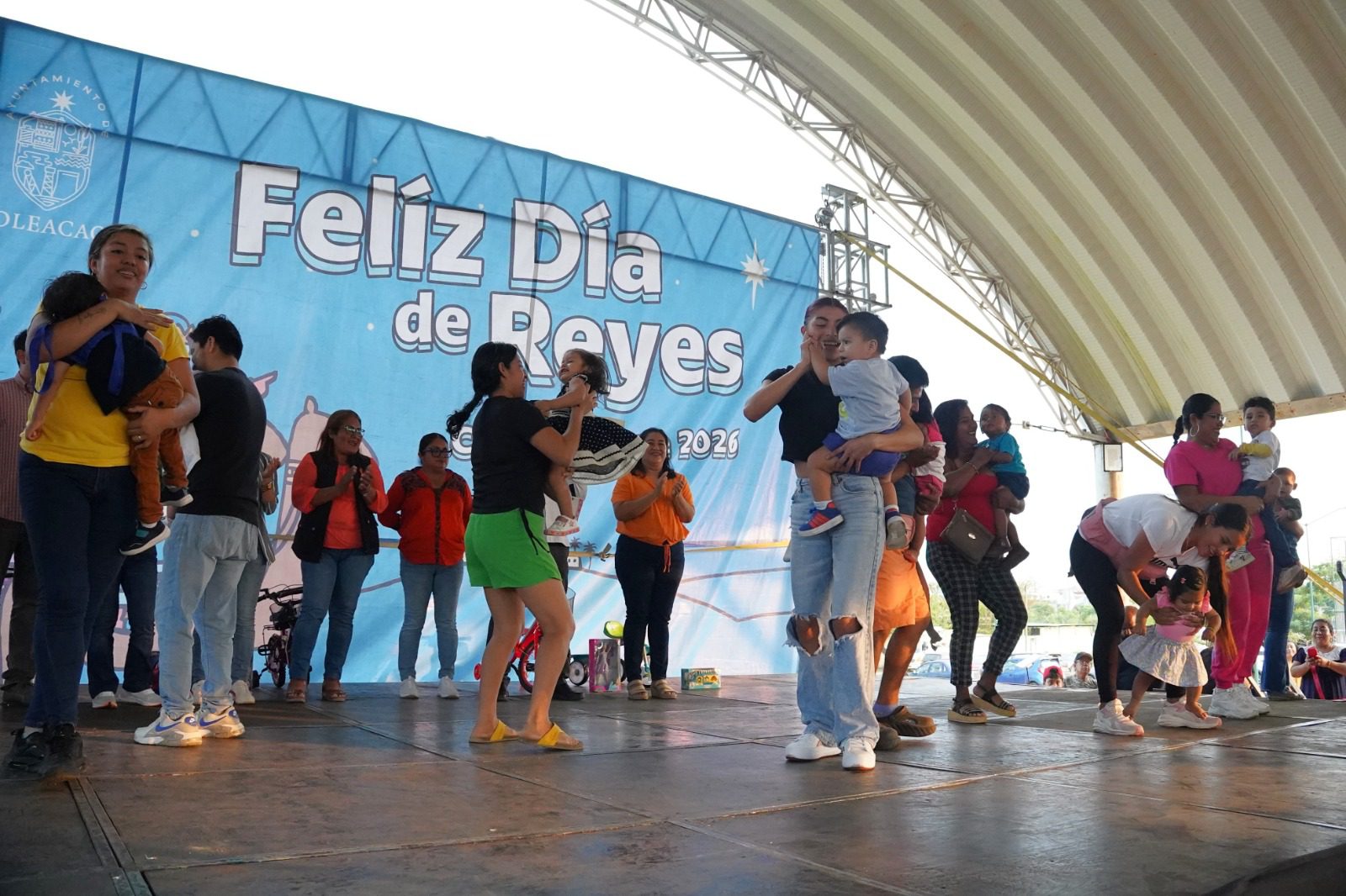 La síndica única, Nereida Jiménez cruz y los regidores: Fabiola Santiago González, Mariana Hernández Vite, Sael Giovanni Carrizosa, Olga Pérez González, Madai Martínez Marcial y Luis Mateo Jiménez, fueron los encargados de dar la bienvenida y entregar junto a los reyes magos todos los regalos, en el domo del parque El Naranjito.