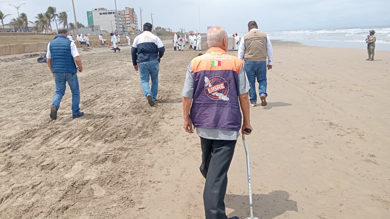 Ciudadanos y autoridades limpian playas de Coatzacoalcos tras llegada de crudo